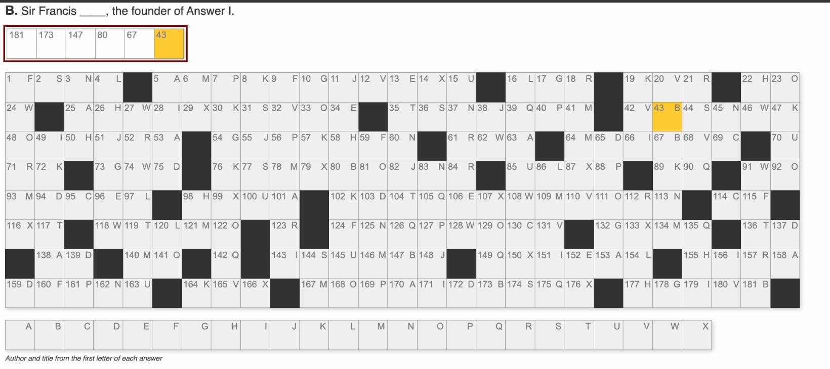 Aug 27, 2023: Sunday Acrostic (Nyt) -Harshit Sahay in New York Times Easter Egg Crossword Puzzles